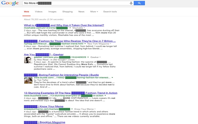 As articles about Normcore flooded the virtual fishbowl, the backlash began, as did a demand for normcore mentions to be banished from the Internet. So Daniel Spagnoli developed a Chrome extension called No More #Normcore to redact the word from existing.