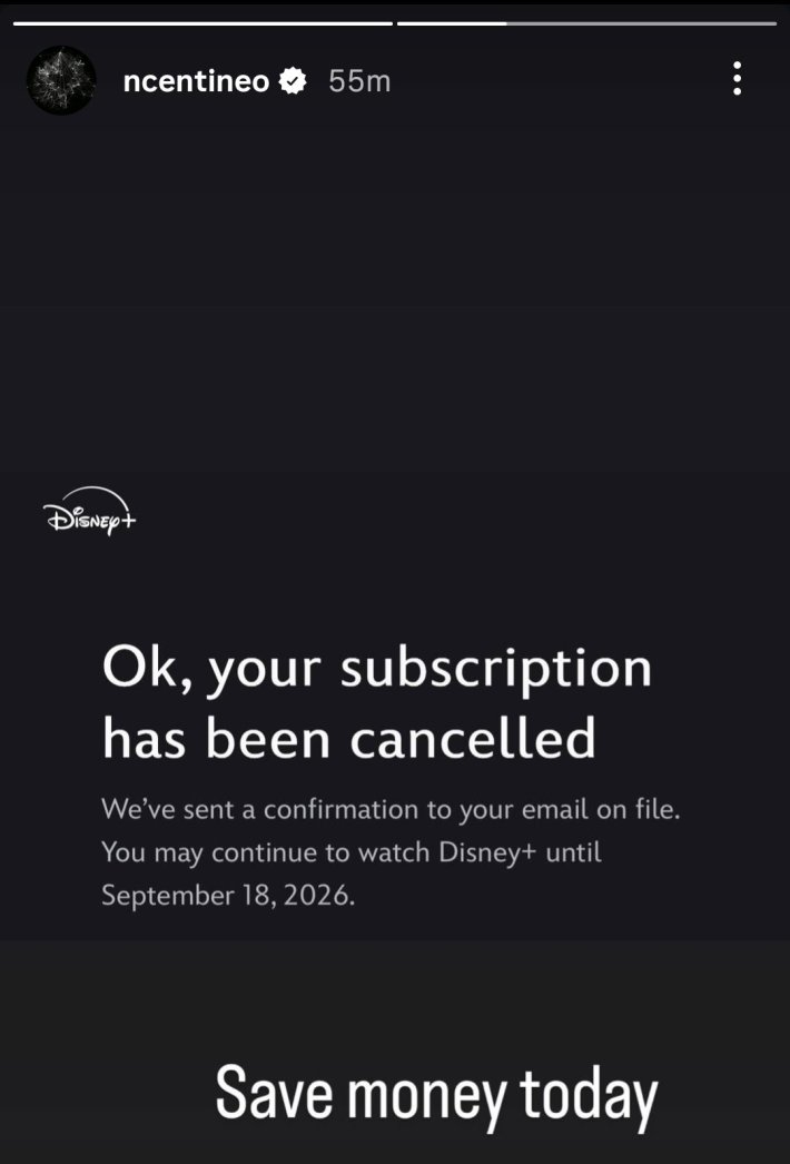Some folks have been sharing their cancellation notices on social media to encourage others to do the same. Centineo, who previously appeared in several Disney Channel shows as well as other media under the large umbrella of Disney, posted one of his own to Instagram Stories along with the caption "Save money today."