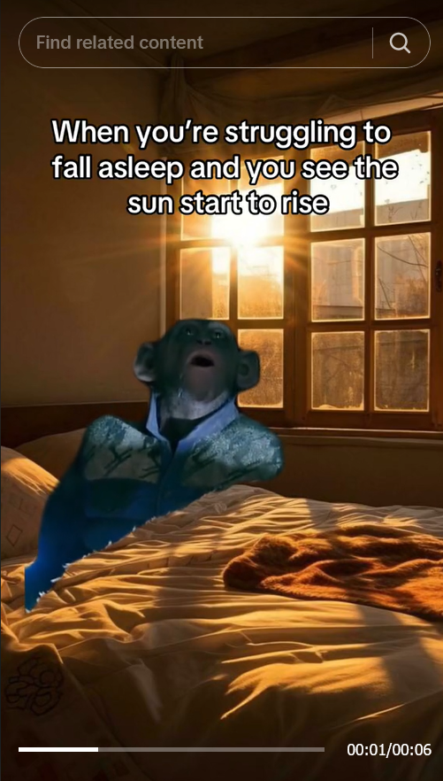 In late May of 2024, TikTok users began to discover this green screen asset and insert it into their videos. On May 26, some of the first TikToks with the "oh no" monkey appeared on the social media site to express how users feel when their boss calls them on their day off, alongside other modern horrors.