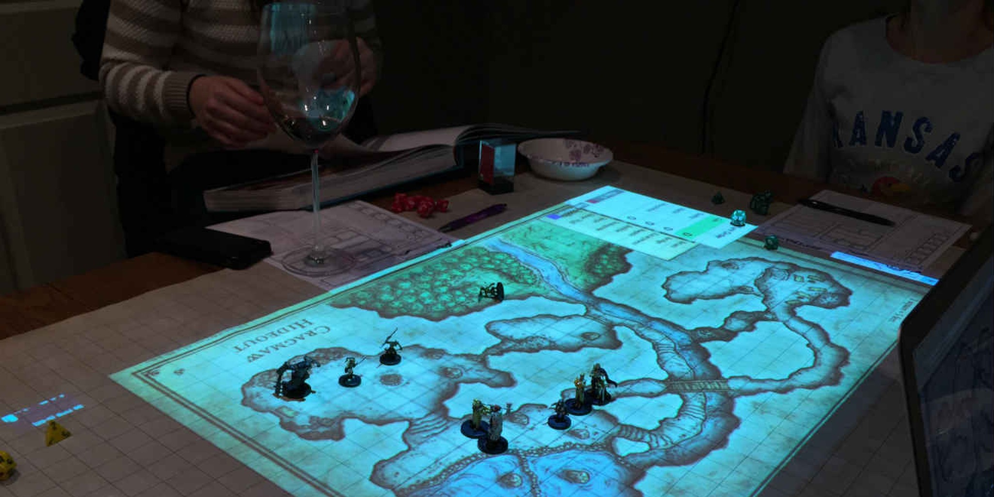 A projector combined with a Web-based tabletop role playing game tool make for a new and really cool way to play Dungeons and Dragons.