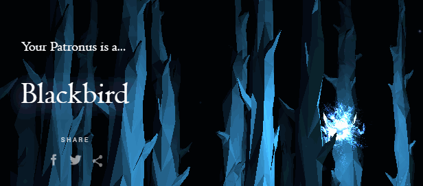 Last year, upon Pottermore’s relaunch, the site promised that “Soon, you’ll also be able to find out the form of your Patronus and ponder on what that means.” And so it did, but not before offering a number of teases online. On Wednesday, Pottermore started to tweet out a dark photo that, in subsequent tweets, began to reveal art of the Forbidden Forest and a silver wisp.