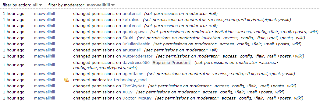 Obviously aware of the cries of “censorship” from the r/technology community, maxwellhill began approving and removing moderators at a rapid pace, in an apparent effort to calm the brewing storm and strip other mods of their permissions. One of the redditors maxwellhill added Thursday was anutensil, a controversial r/worldnews moderator and former r/politics mod who has been described as “poisonous rot that makes any team operate in a negative environment.”