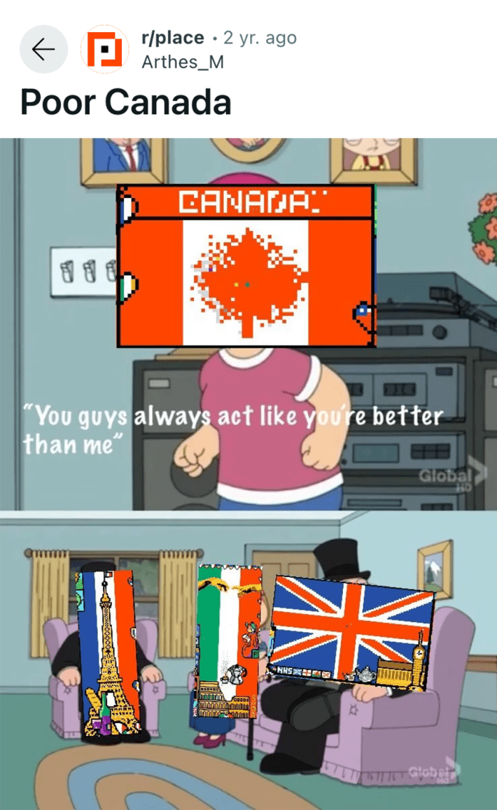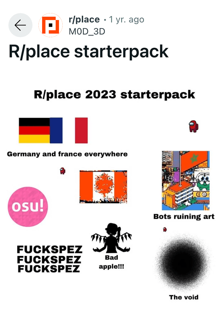 Throughout r/place's ups and downs, it inspires the Reddit community to create memes: