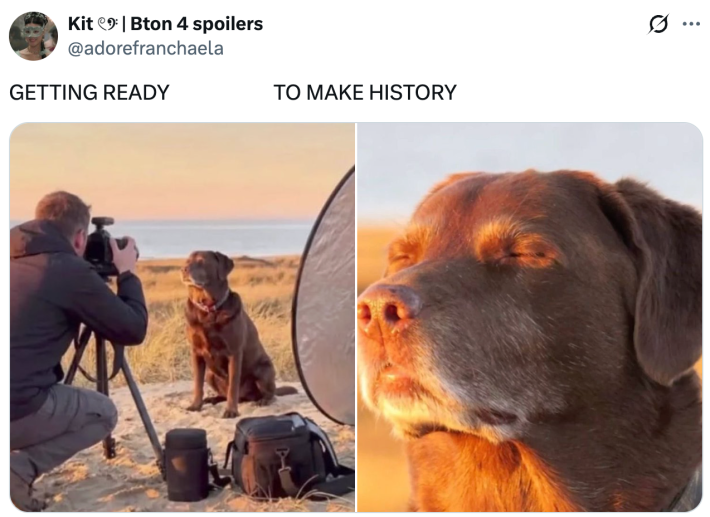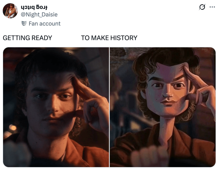 The meme, which has gone viral on X, involves two images/clips focused on a particular celebrity before and after a viral moment. Accompanying this is text reading: "Getting ready [...] to make history." The first one to blow up was about a Dua Lipa album cover:
