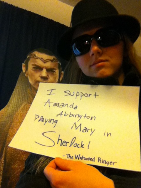 On Monday, the same day that Vertue tweeted out the wedding placemat, Sherlock writer Mark Gatiss's husband Ian Hallard tweeted, "I get that some people like to fantasise about Sherlock & John as a couple but no one seriously thinks it will actually happen, do they?!" Abbington responded with a couple of tweets on the subject, saying that she found slash fans' reactions amusing, and that she felt the friendship between the two men was "more interesting" than the queer romance many fans so desperately want. After that, however, Abbington noted that she had received death wishes from angry Sherlock slashers. The news of the death threats rocked the fandom, prompting many JohnLock fans to speak out and issue messages of support.