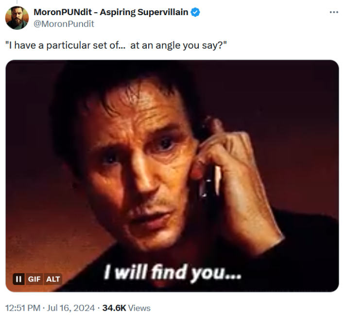Some posted comparison photos of the roof from which the Pennsylvania shooter attempted to kill Trump with similarly angled rooftops on which police snipers are perched with captions such as "good slope" and "bad slope." Others have altered quotes from popular films about spies or general badasses to depict them rejecting missions due to sloped roofs.