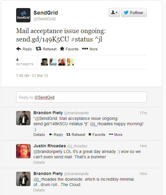 Others seemed to celebrate as SendGrid was hit by performance issues of an apparent DDoS attack.