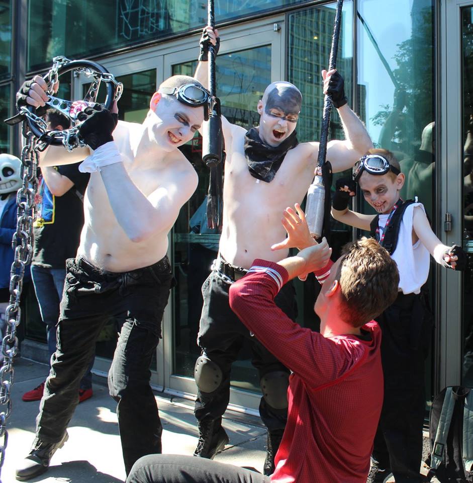 At Emerald City Comic Con last weekend, cosplayer Tim Adam perfected the art. Instead of stopping by for one or two "dying redshirt" photos, he built up a massive gallery of imaginative redshirt death crossovers with other cosplayers from Marvel to Star Wars to Mad Max: Fury Road.