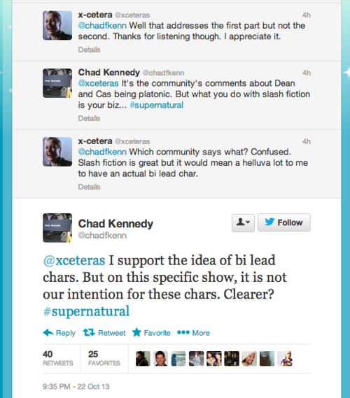 Perhaps the core issue in this Twitter debate was the lack of understanding the production team seemed to have about the viewpoint of the fandom. Kennedy stated that he’d only recently learned what Destiel was, and had no idea it was so big; Bee asked, “what’s a ship?” at one point while trying to figure out what he’d said wrong.