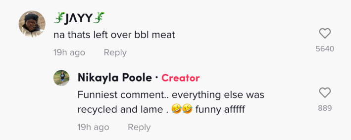 "You got one week only available after 2pm runnnn and thank me later byeeeeeeee," Jewel wrote in a comment on her TikTok.