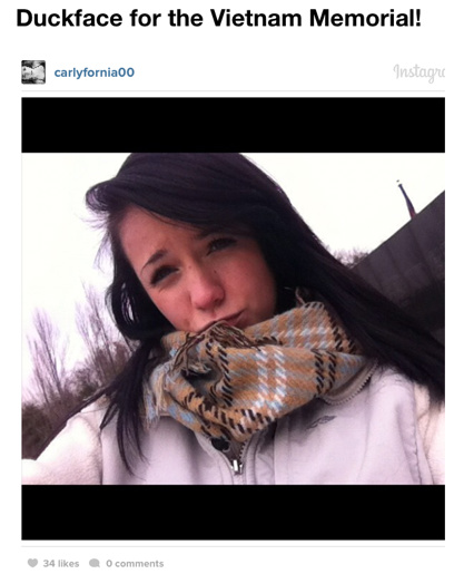 The new Tumblr Selfies at Serious Places is exactly what it sounds like: a collection of clueless tourists and duckfaced teenagers flashing peace signs (the default selfie pose) in front of historic landmarks. It’s also a reminder that selfies can be a bad idea. Who could forget this doozy of George Zimmerman’s lawyer, Don West, celebrating after trial?
