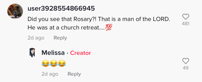 Another user commented on his rosary, offering another joking excuse: He was at a "church retreat."