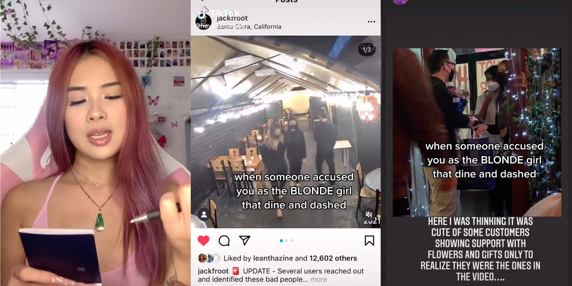 A TikToker said that two Instagram accounts falsely identified her as a woman who had allegedly dined and dashed.
