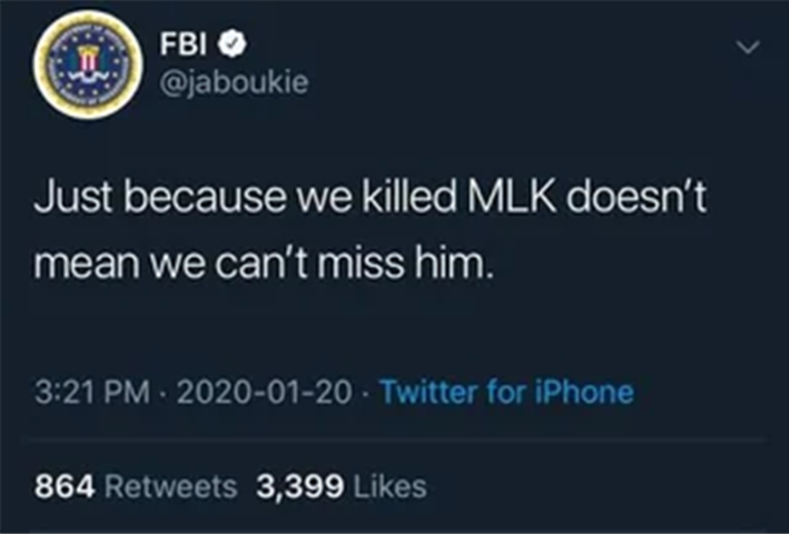 "Just because we killed MLK doesn't mean we can't miss him." —u/daisydozen