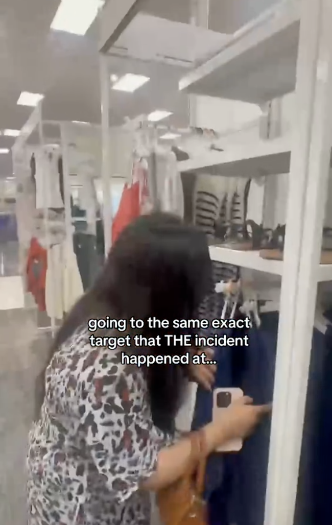 TikToker @maafatimaa made a reenactment of the alleged stealing spree. The caption reads, "going to the exact same target that THE incident happened at."