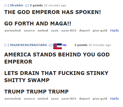 The post, which spoke the language of r/the_donald with an easy fluency, unsurprisingly sparked a rapturous torrent of adulation from the subreddit's denizens.