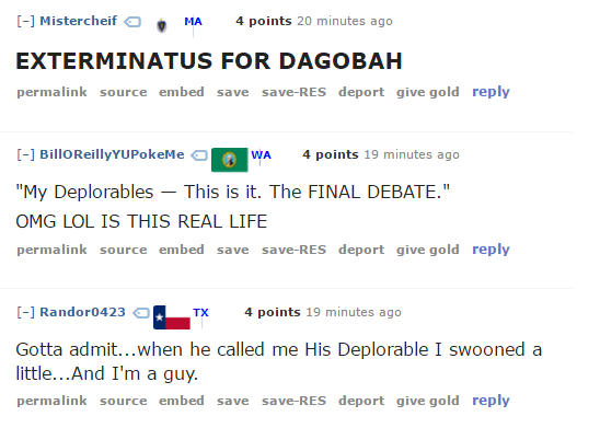 In the minutes immediately preceding the third and final presidential debate of the 2016 general election, Republican nominee Donald Trump stopped by Reddit's community for Trump fandom.