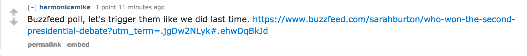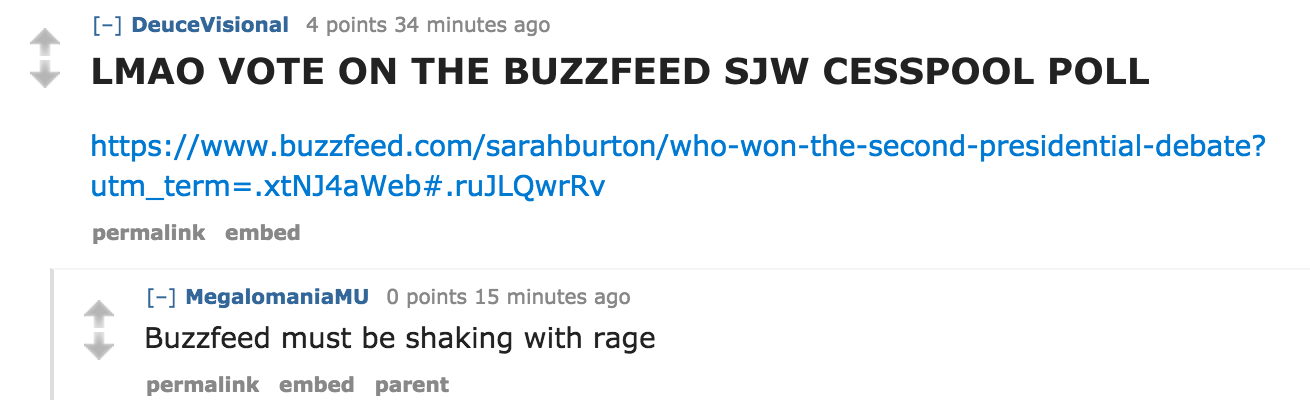 Here’s one BuzzFeed poll that went in Trump’s favor, and the reaction it received on Reddit.