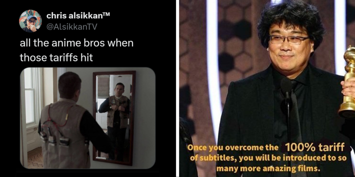 Film lovers are giving President Donald Trump’s plan to impose 100 percent tariffs on foreign films two thumbs down, in meme form.