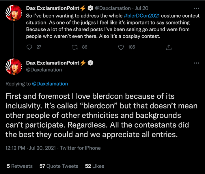 “So a white person won the cosplay contest at #Blerdcon. That just doesn’t sit right with me. We can’t even win at our own events,” tweeted @atwash101.
