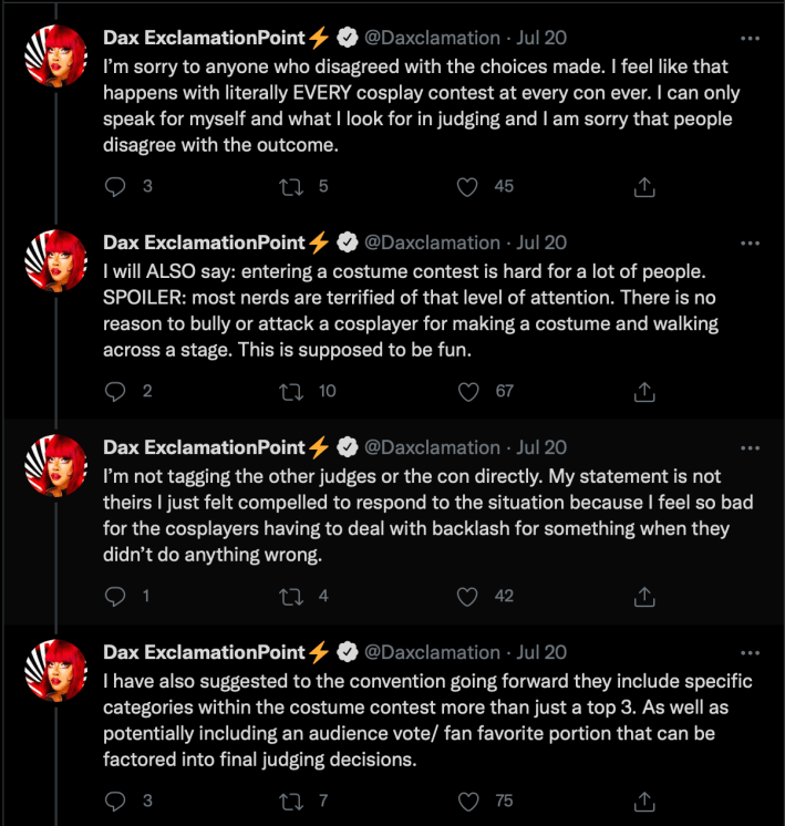 “Nope fault the judges. They were talking crap about the black contestants. Judges are black too and sometimes the judges help make the criteria for the contest. Everyone is at fault,” @Leighanncosplay said.
