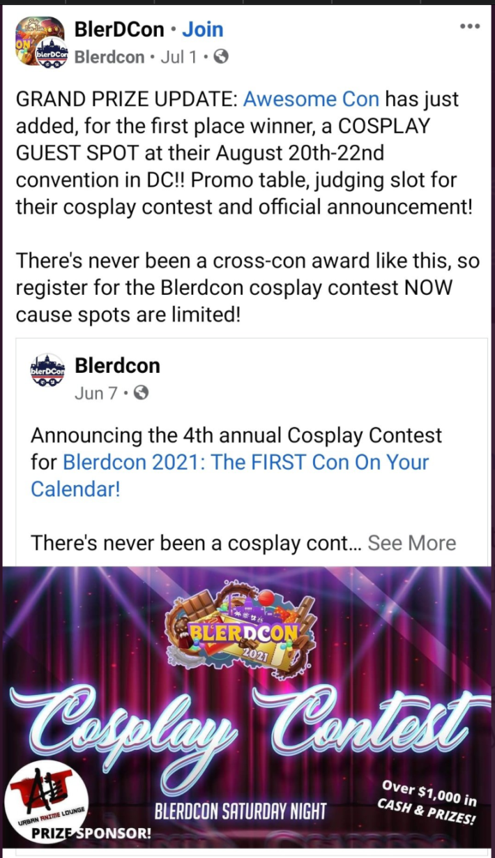 A cosplay costume contest was held during the convention, and self-proclaimed blerds are angry and disappointed that a white woman was given first place. Some people expressed that white inclusivity is not always necessary and there needs to be space for Black cosplayers to thrive.