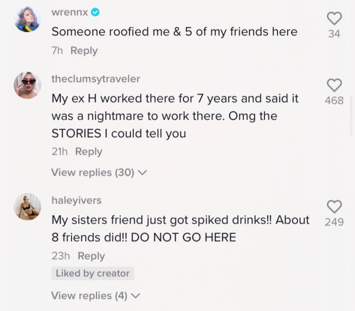 White's post made its way onto TikTok, where one woman shared a similar loss of bodily function after a night at The Abbey.