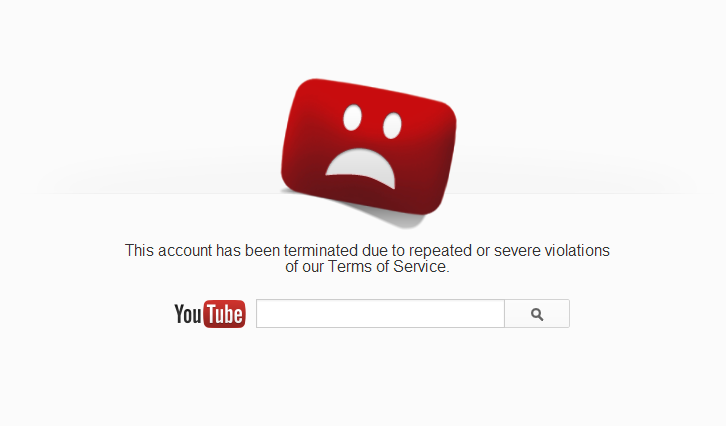 "This account has been terminated due to repeated or severe violations of our Terms of Service," the message read.