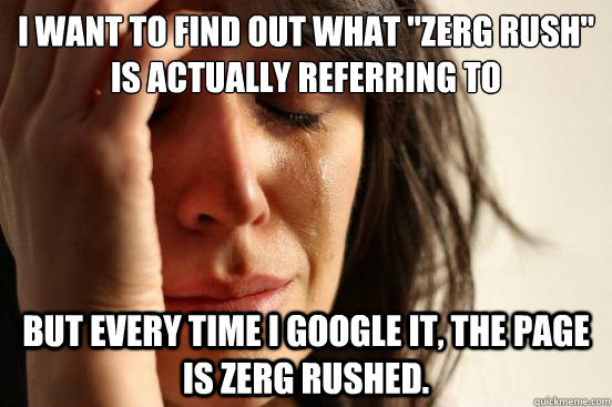 As legend has it, the meme originated during a multiplayer match when one player launched a Zerg rush attack against an unprepared opponent who exclaimed “OMG ZERG RUSH,” much to the delight of the other players. Supposedly, this match was between Korean players, who make up a large part of Starcraft’s international players, and responded with “KEKEKEKE” (sometimes represented as ㅋㅋㅋ), which is the Korean version of “lololol” and also an onomatopoeia of the the Zerglings’ attack mode.